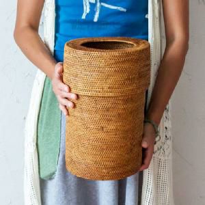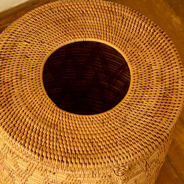 天然素材100%のアジアンバスケット。ゴミ箱はもちろん収納バスケットにも使えるバリ島の人気アジアン雑貨 フタに穴のあいたアタ製バスケット[円柱形][2005]【アジアン雑貨のアジア工房本店】