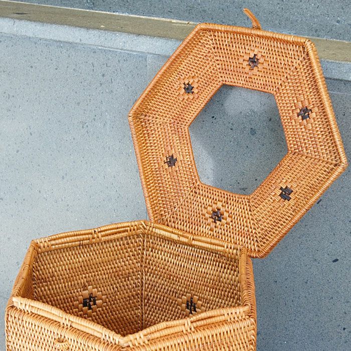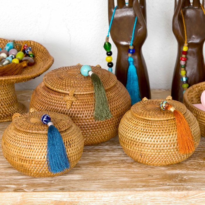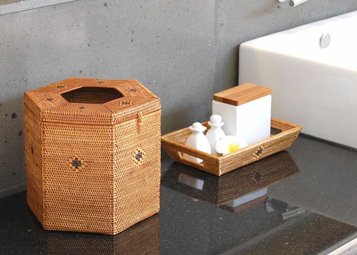 散らかる小物をすっきり収納できるアタで編まれた取っ手付き収納ボックスや 二重構造のごみ箱など、バリ島の人気アジアン雑貨。