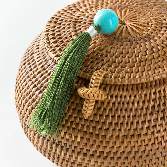 当店オリジナル!カラフルなタッセル付きで可愛さ倍増☆ アジア工房オリジナルタッセル付き アタ製ボールケース(Mサイズ)フラップ付きAタイプ (2116-13010 2116-13011 2116-13012)【小物入れ 収納バスケット アタ タッセル 籠 カゴ かごバスケット ふた付き収納ケース 整理ボックス バリ 雑貨 アジア雑貨 アジアン雑貨】