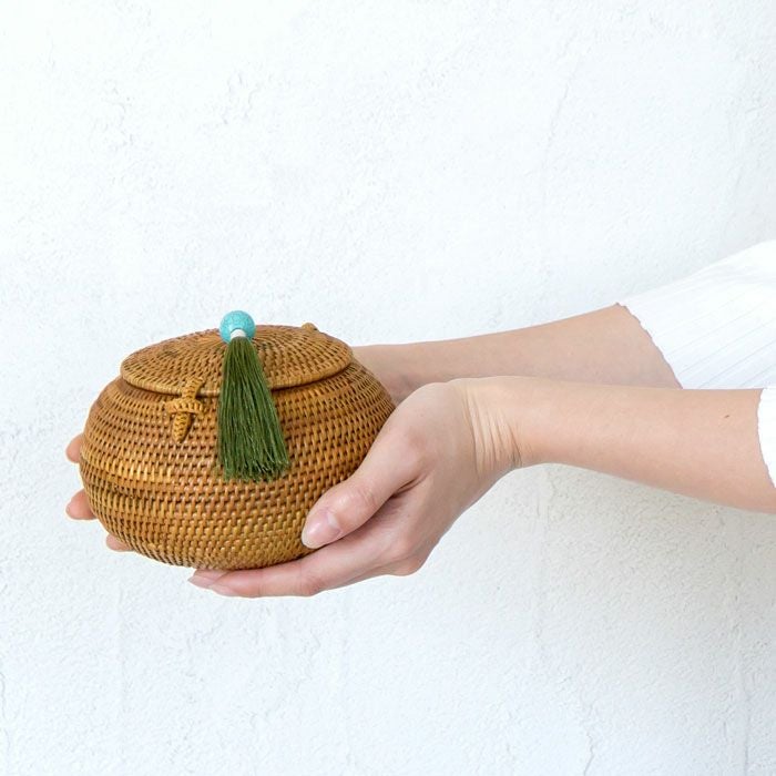 天然素材アタで編まれたナチュラルテイストたっぷりなポプリケースやシガレットケースなど日常を豊かに彩る生活雑貨。