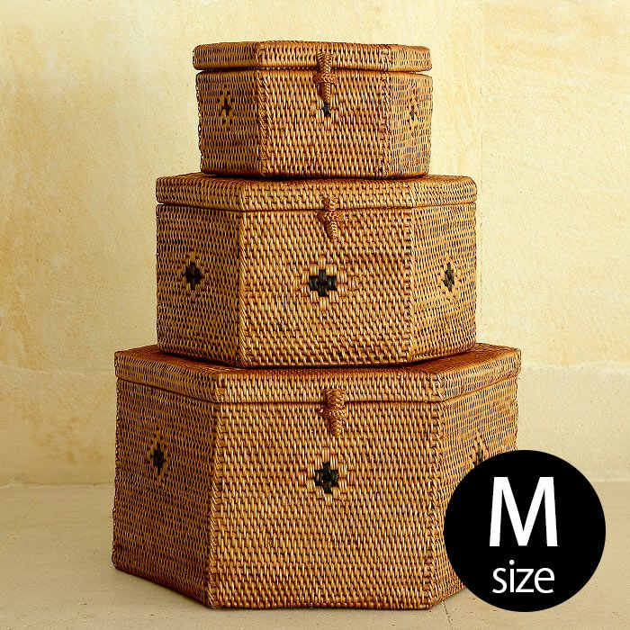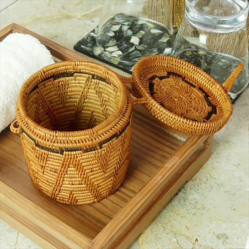 散らかる小物をすっきり収納できるアタで編まれた取っ手付き収納ボックスや 二重構造のごみ箱など、バリ島の人気アジアン雑貨。