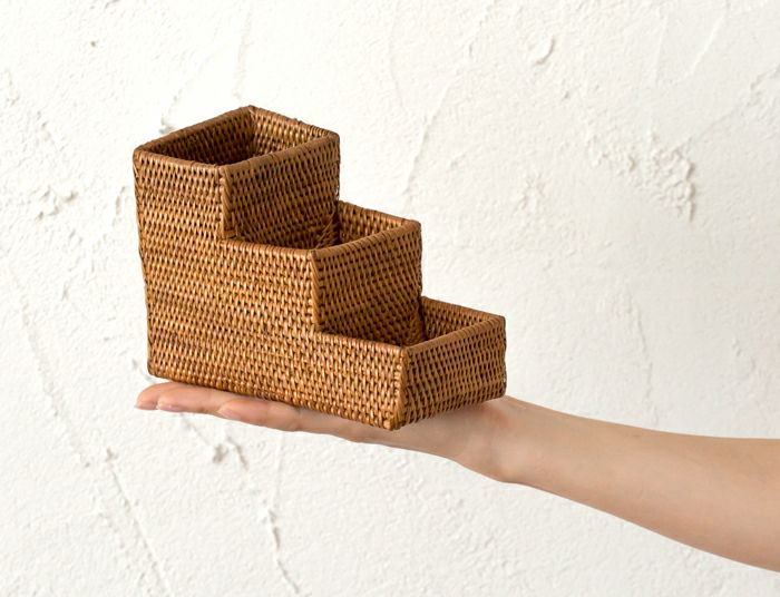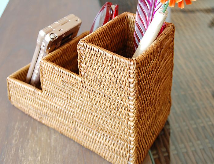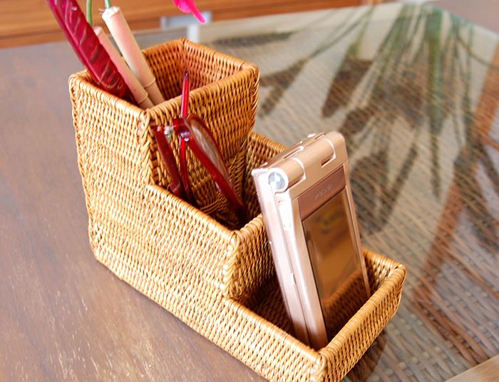 職人がひとつひとつ丁寧に編み上げたペン立てやファイルスタンド、ペンケースなどアタのステーショナリー。100%天然素材なのでスッとインテリアにとけ込みます。