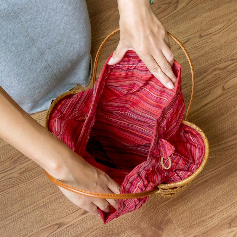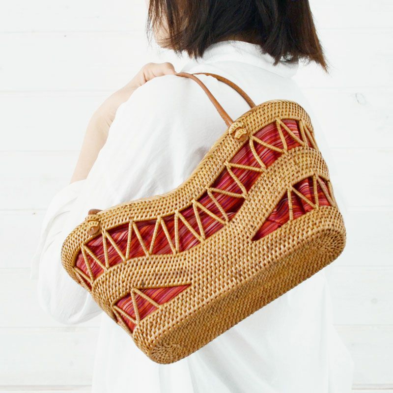 バリ島の天然素材で編まれた人気のかごバッグ。 アタで編まれた アジアン かごバッグ[内袋付き](13210)【おしゃれ トートバッグ レッド レディース かわいい カゴバッグ 夏 ショルダー バスケット アジアン雑貨 エスニック 籠バッグ カゴ かごバック アタバック アタバッグ バリ雑貨 バリ島】