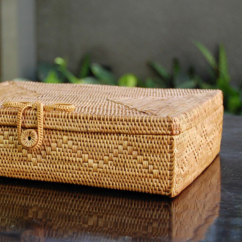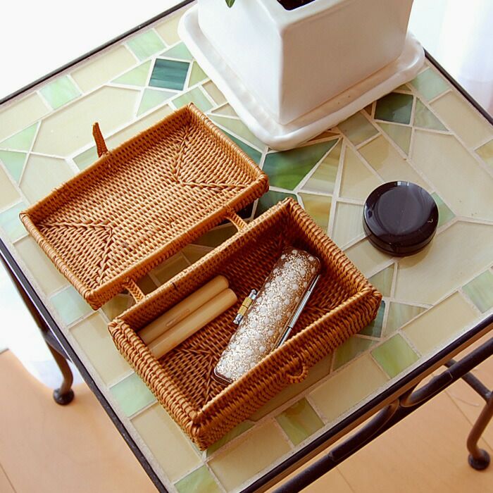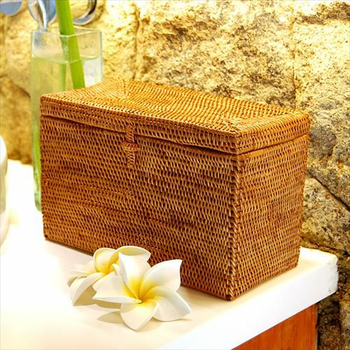 散らかる小物をすっきり収納できるアタで編まれた取っ手付き収納ボックスや 二重構造のごみ箱など、バリ島の人気アジアン雑貨。