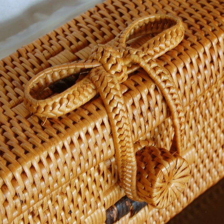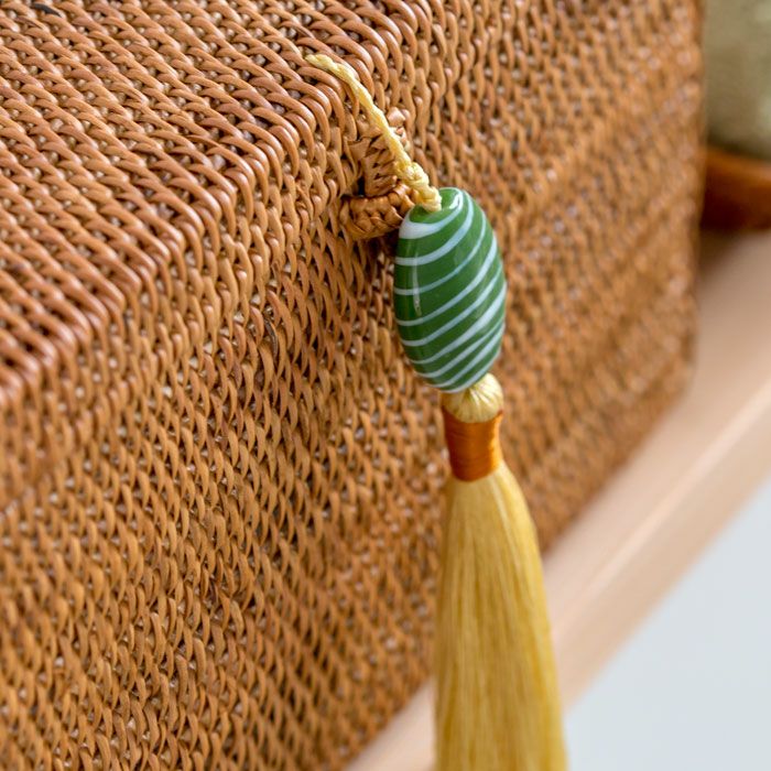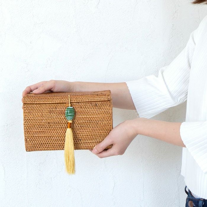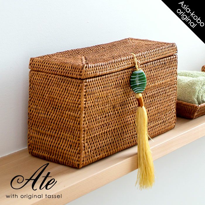 当店オリジナル!カラフルなタッセル付きで可愛さ倍増☆ アジア工房オリジナルタッセル付き アタ製フタ付小物入れケース(長方形タイプ)(2202-13020 2202-13021 2202-13022)【小物入れ 収納バスケット アタ 籠 ふた付き インテリア ナチュラル おしゃれ フタ付き 収納ボックス 蓋付き 収納カゴ 収納かご バリ雑貨 アジアン雑貨】