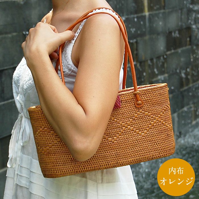 バリ島の天然素材で編まれた人気のアジアン雑貨 アタで編まれたかごバッグ Aタイプオレンジ色 かごバッグ おしゃれ トートバッグ レディース かわいい カゴバッグ 夏 アジアンバッグ 春 カバン 秋 鞄 ナチュラル かばん ばっぐ ショルダー バスケット 巾着付き きれいめ エスニック バリ 雑貨 アジアン雑貨 [2946]