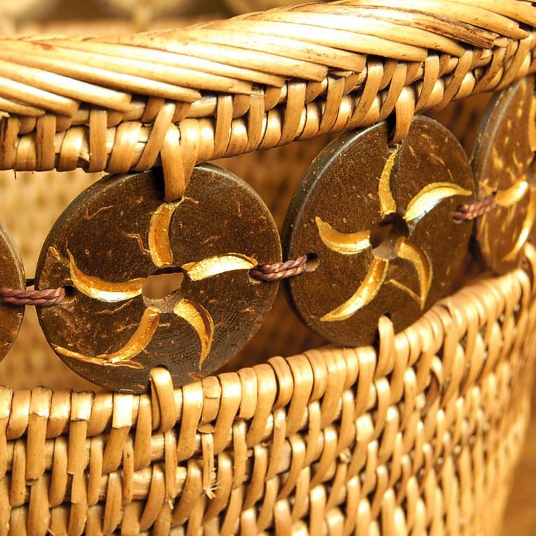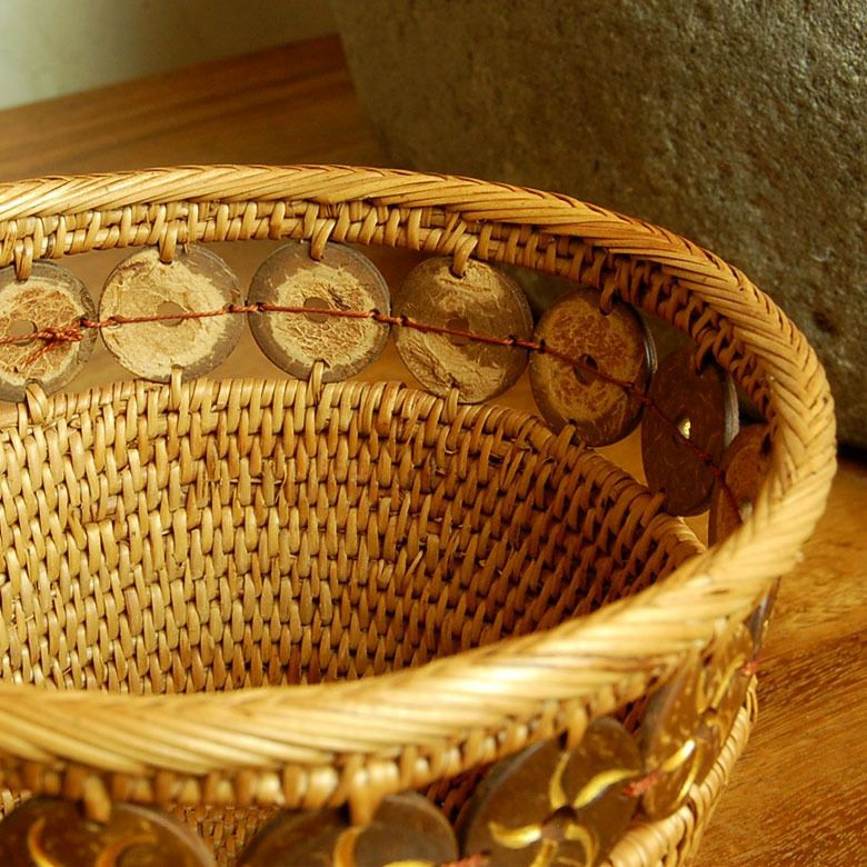 バリ島の天然素材で編まれた人気のアジアン雑貨 アタで編まれたココナッツシェルのデコレーション小物入れ[10679]【アジアン雑貨のアジア工房本店】