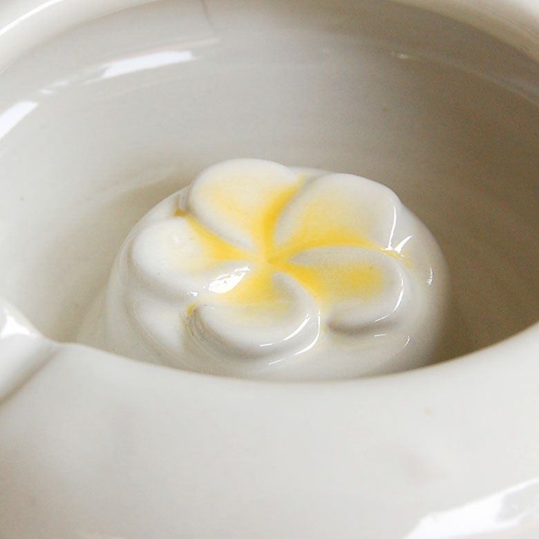 プルメリアが真ん中に咲いた、ハンドメイドの温もり感じる陶器の灰皿。