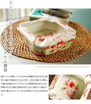 こちらの灰皿にも可愛らしい蓮の花が描かれていて、