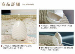 陶器できており、天然の植物の葉をモチーフにしたデザインの