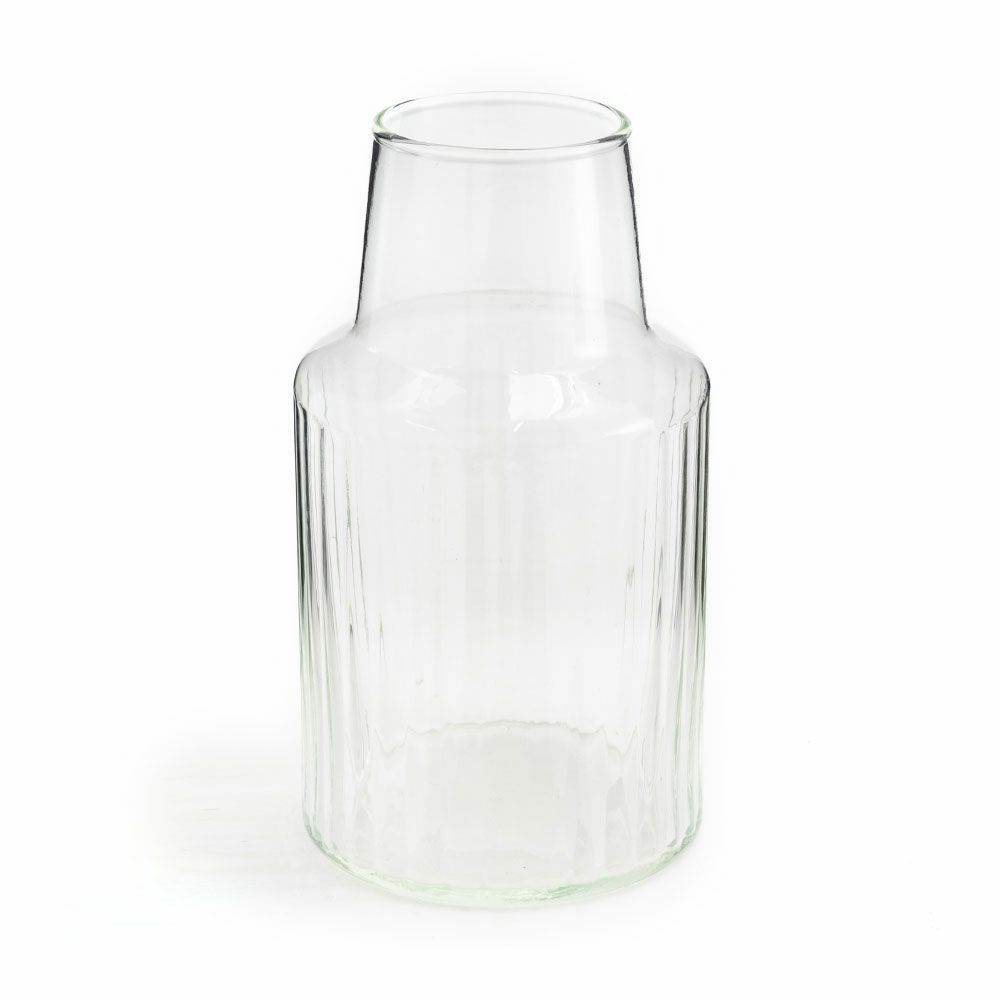 花器 ガラスフラワーベース 観葉植物 ギフト プレゼント 贈り物 フラワーベース 花瓶 ガラス クリア 直径 10cm 高さ 18cm [90425]【 ラウンド 縦縞 ライン ストライプ リサイクルガラス エコ ハンドメイド 手作り おしゃれ ナチュラル シンプル かわいい スタイリッシュ サスティナブル リューズガラス Horn Please MADE 志成販売】
