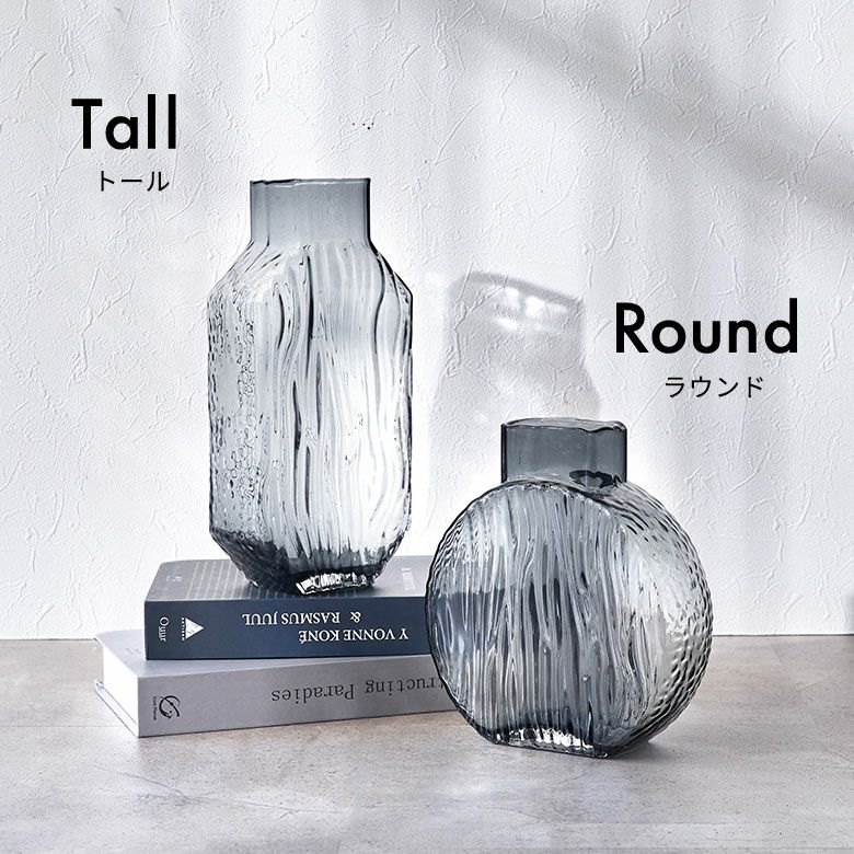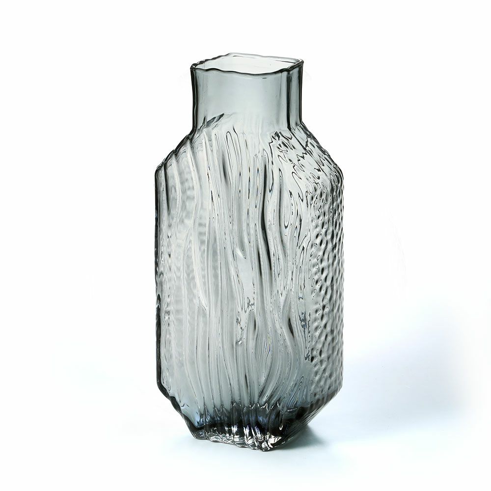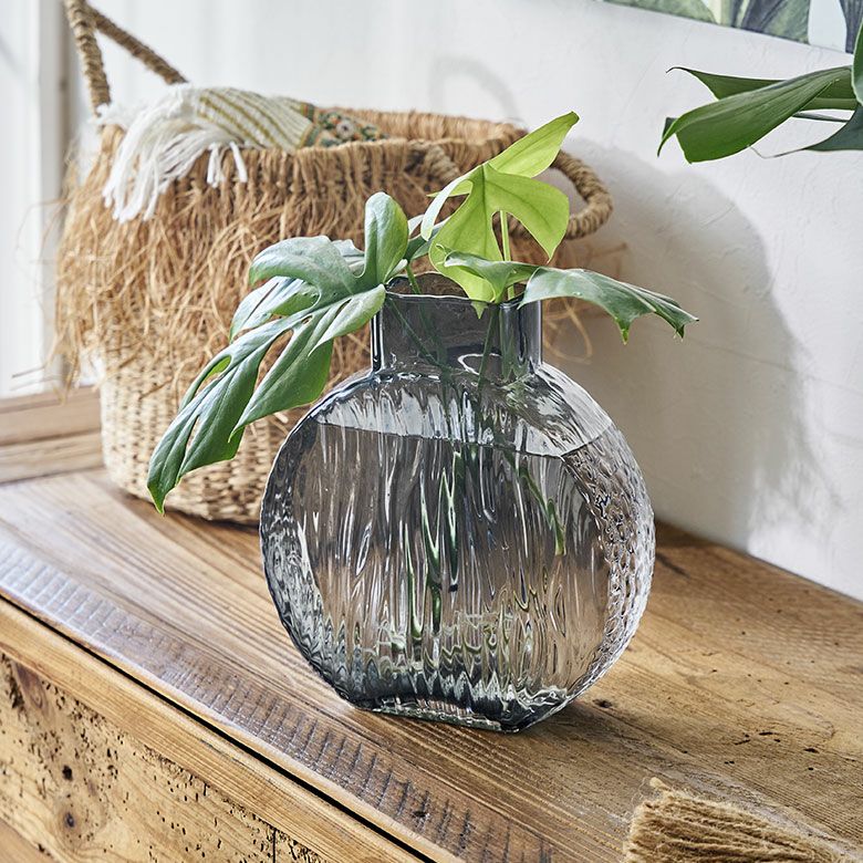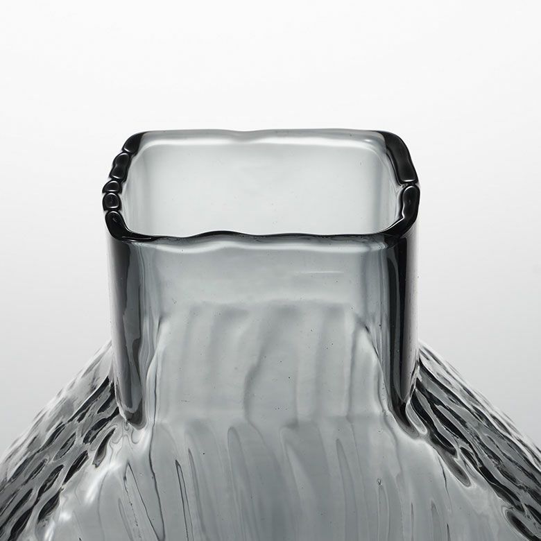 デザイン花瓶 クリア 透明 ガーデン用品 黒 ブラック 玄関 廊下 フラワーベース ガラス クリアグレー グレー 大きい 大型 高い 高さ 21.5cm ラウンド 開口部7.5cm フラット ボトル型 約 W20 × D7 × H21.5 cm 花瓶 花びん 花器 ガラスベース ガラス花びん 生花 ドライフラワー おしゃれ 北欧 オブジェ インテリア アジアン 雑貨 [67107]