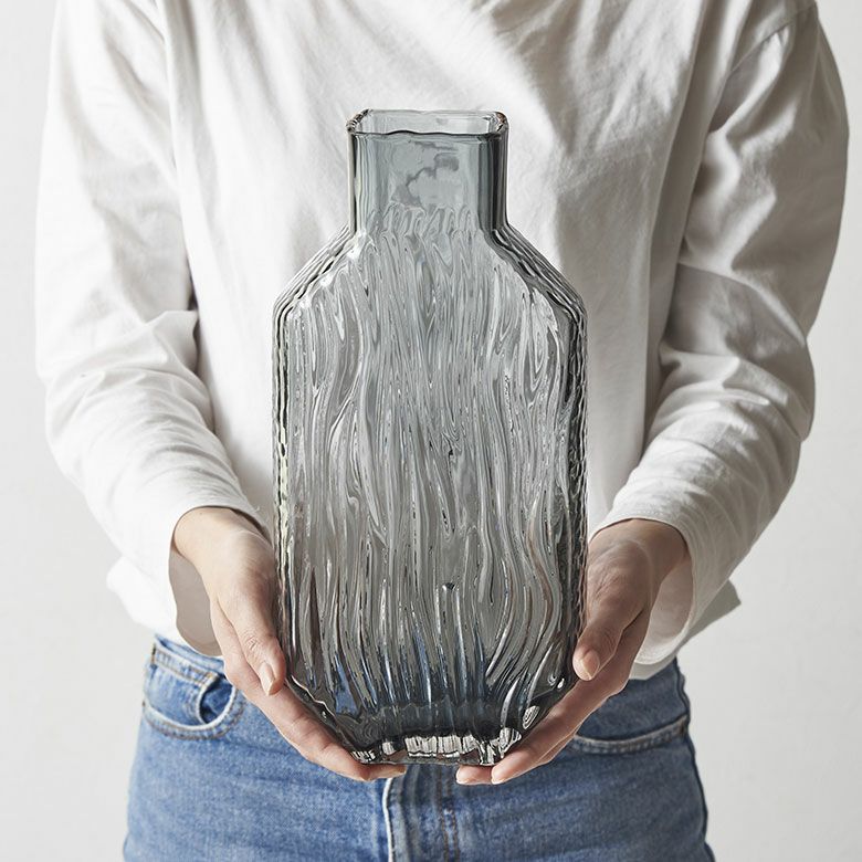 デザイン花瓶 クリア 透明 ガーデン用品 黒 ブラック 玄関 寝室 フラワーベース ガラス クリアグレー グレー トール 大きい 大型 高い 高さ 30.5cm 上径7.5cm フラット ボトル型 約 W15 × D7.5 × H30.5 cm 花瓶 花びん 花器 ガラスベース ガラス花びん 生花 ドライフラワー おしゃれ 北欧 インテリア オブジェ アジアン 雑貨 [67106]