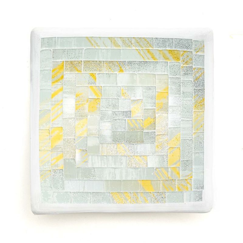 厚みのある陶器の表面にガラスをモザイクタイルのように並べて