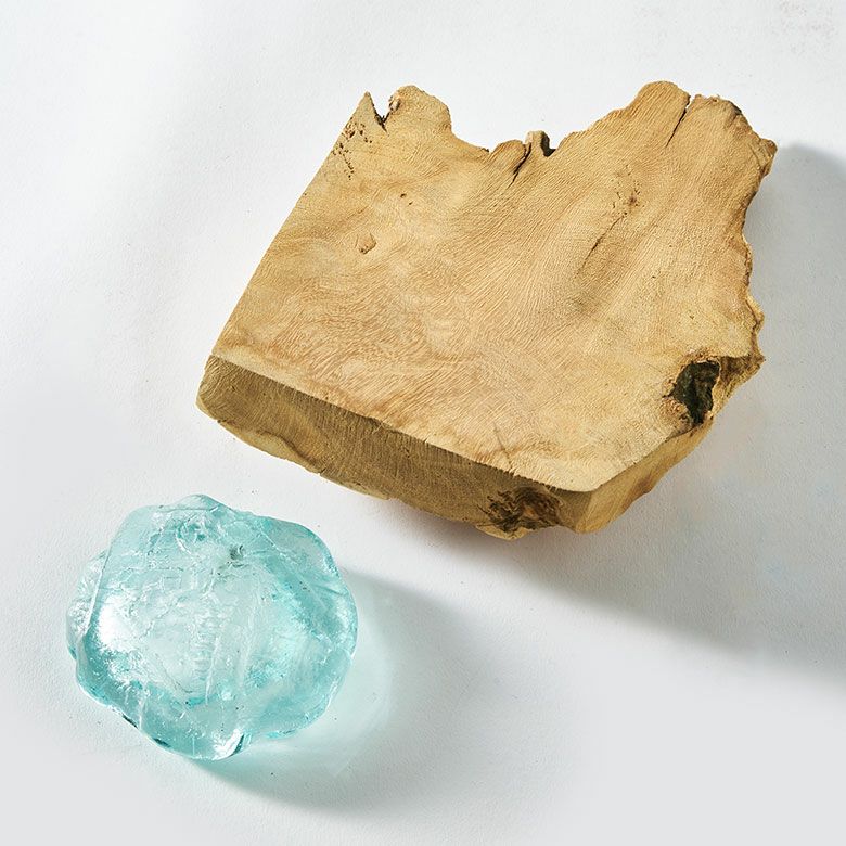 古木の自然な造形と職人の技が織りなす、古木×リサイクルガラスのキャンドルホルダー。