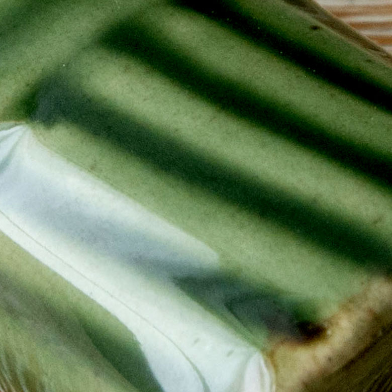 つるんとつやのある質感の渋めのグリーンがとても美しく、