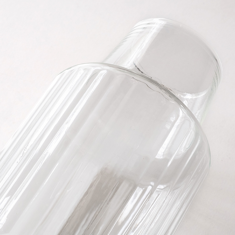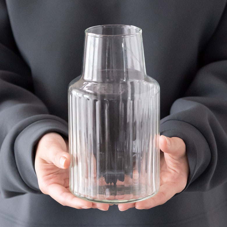 花器 ガラスフラワーベース 観葉植物 ギフト プレゼント 贈り物 フラワーベース 花瓶 ガラス クリア 直径 10cm 高さ 18cm [90425]【 ラウンド 縦縞 ライン ストライプ リサイクルガラス エコ ハンドメイド 手作り おしゃれ ナチュラル シンプル かわいい スタイリッシュ サスティナブル リューズガラス Horn Please MADE 志成販売】