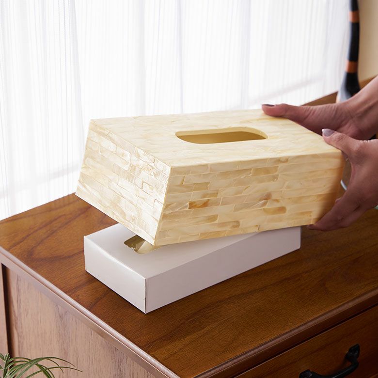▲宝石のように輝く自然の風合い。パールシェル素材のインテリア「パルシェ」