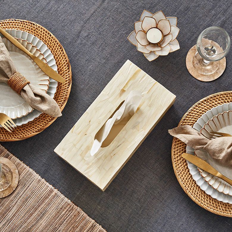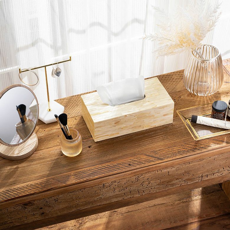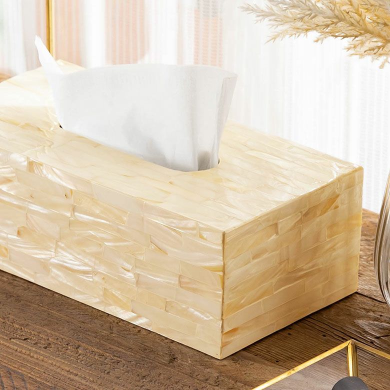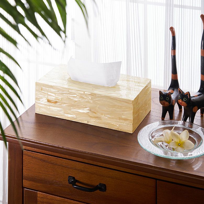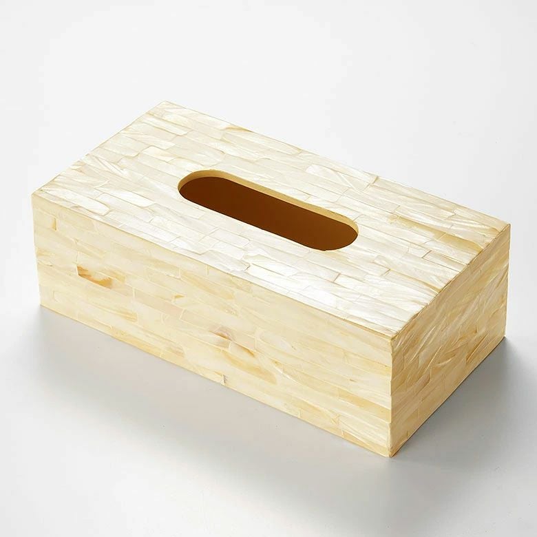 つやつやとした輝きが美しい、シェル素材のティッシュボックスカバー。