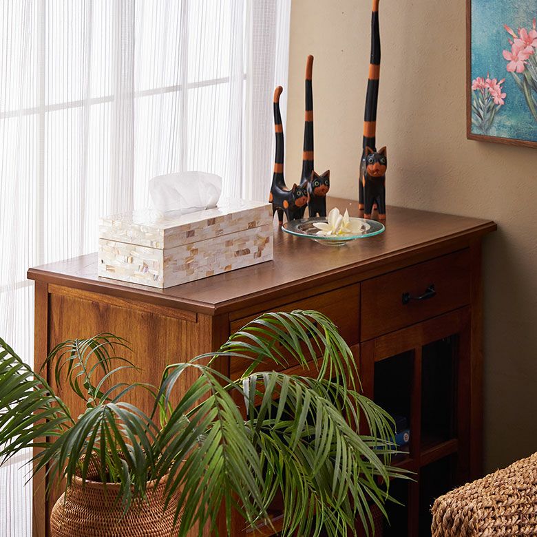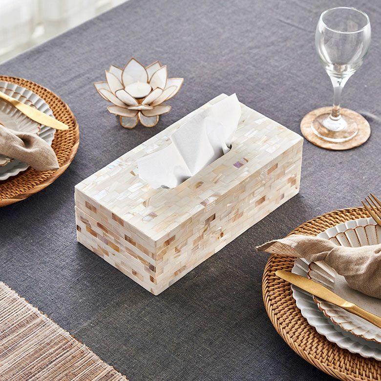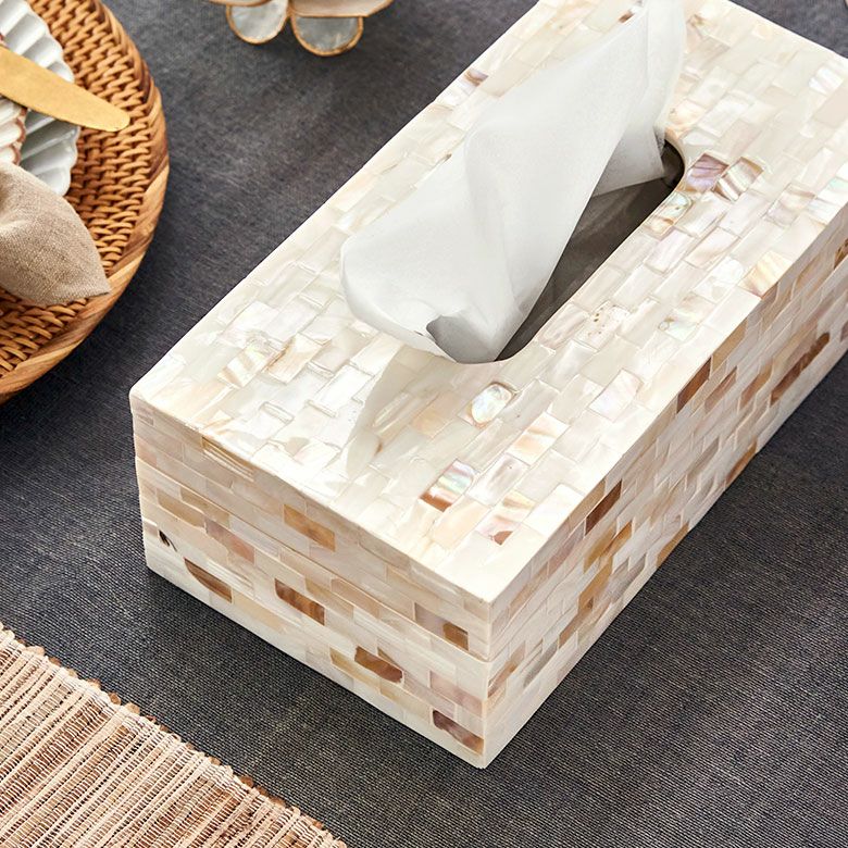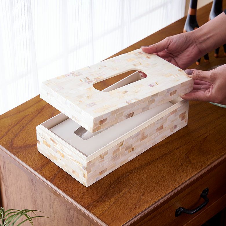 つやつやとした輝きが美しい、シェル素材のティッシュボックスカバー。