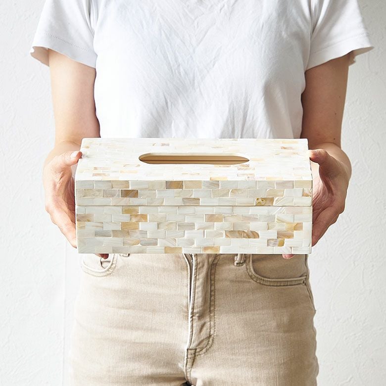 パールシェルのティッシュボックスカバー 貝 シェル素材
