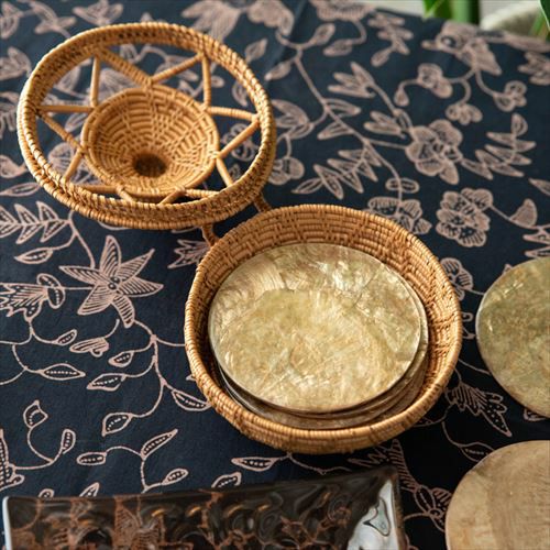 ▲リゾートスタイルのダイニングテーブルを演出する、アジアンコースター