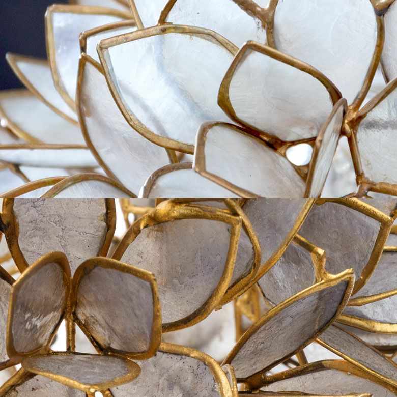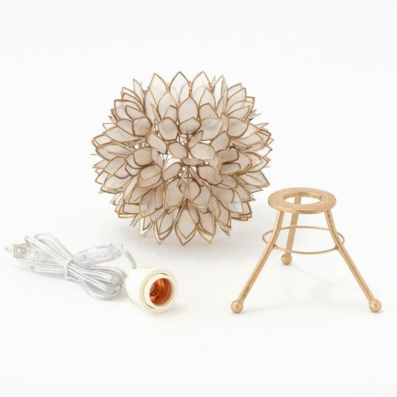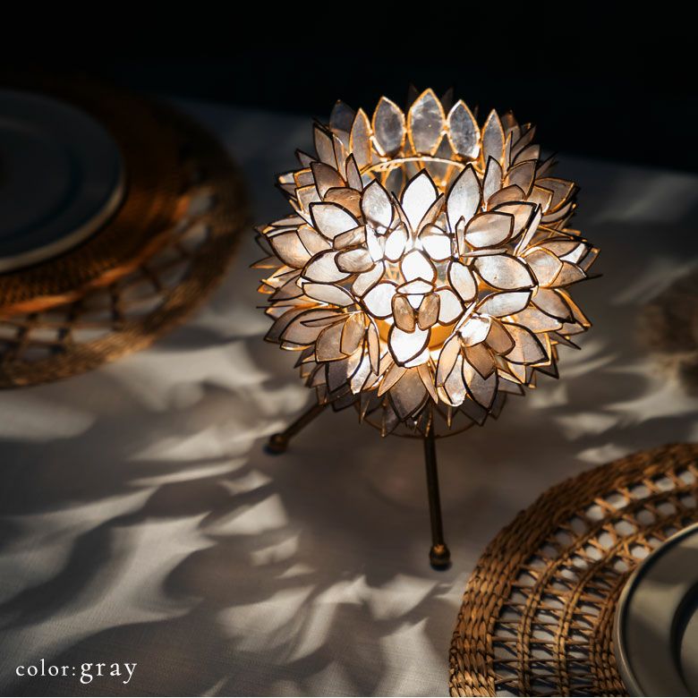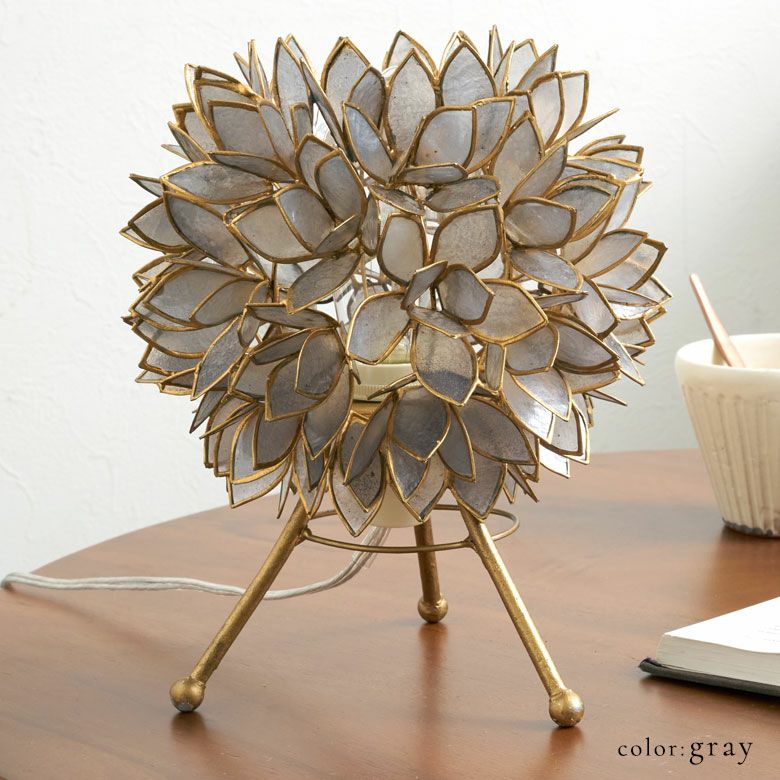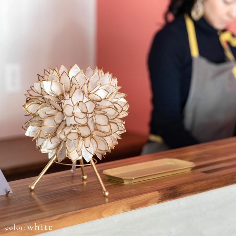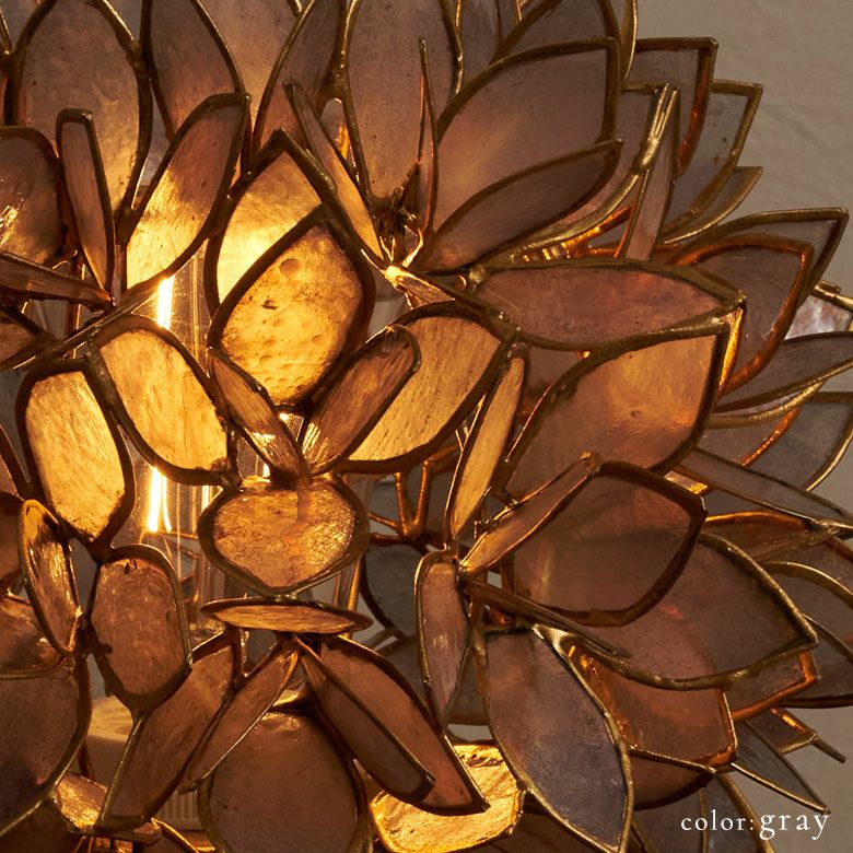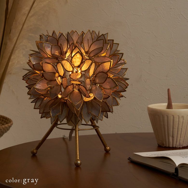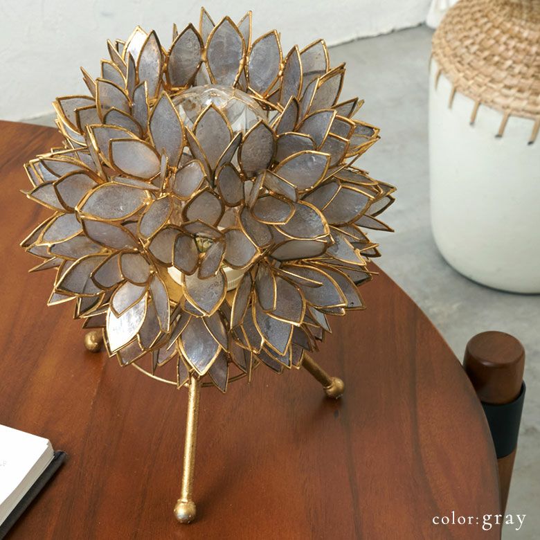 こちらは、天然のカピス貝を贅沢に使った、アジアン・スタンドランプ。