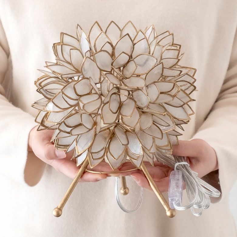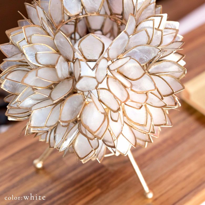 貝)を貼り付けて出来た照明やキャンドルホルダーなどを扱う