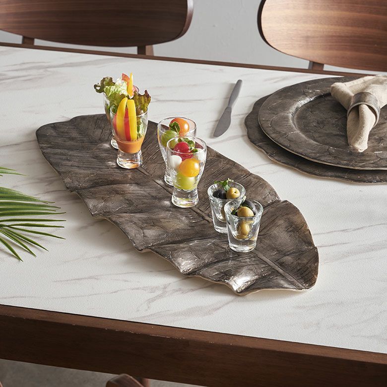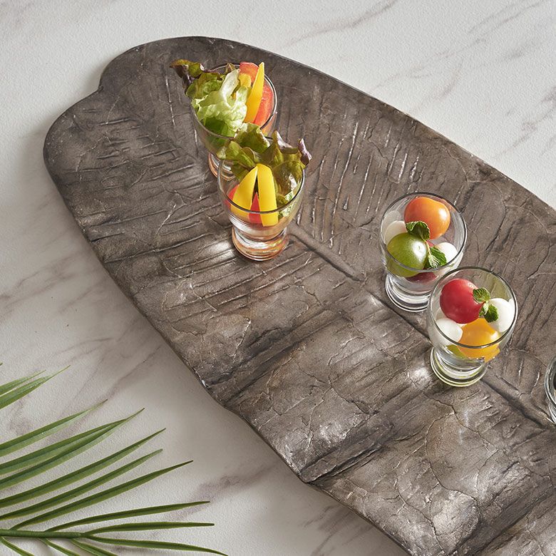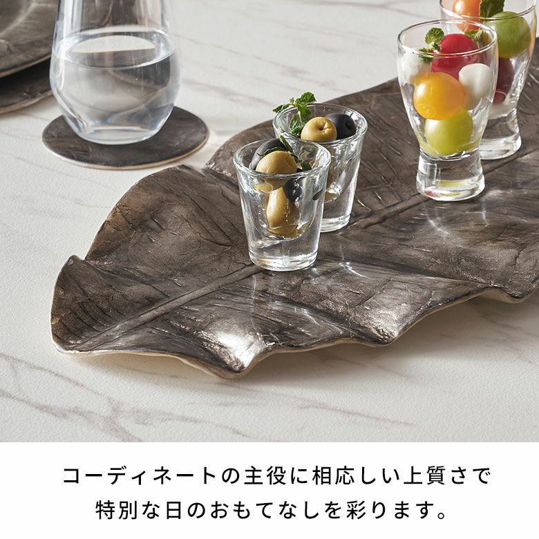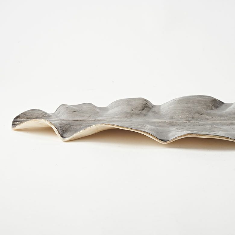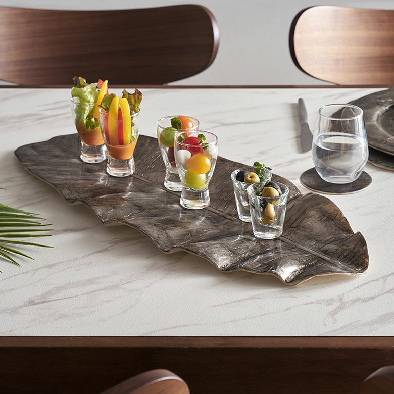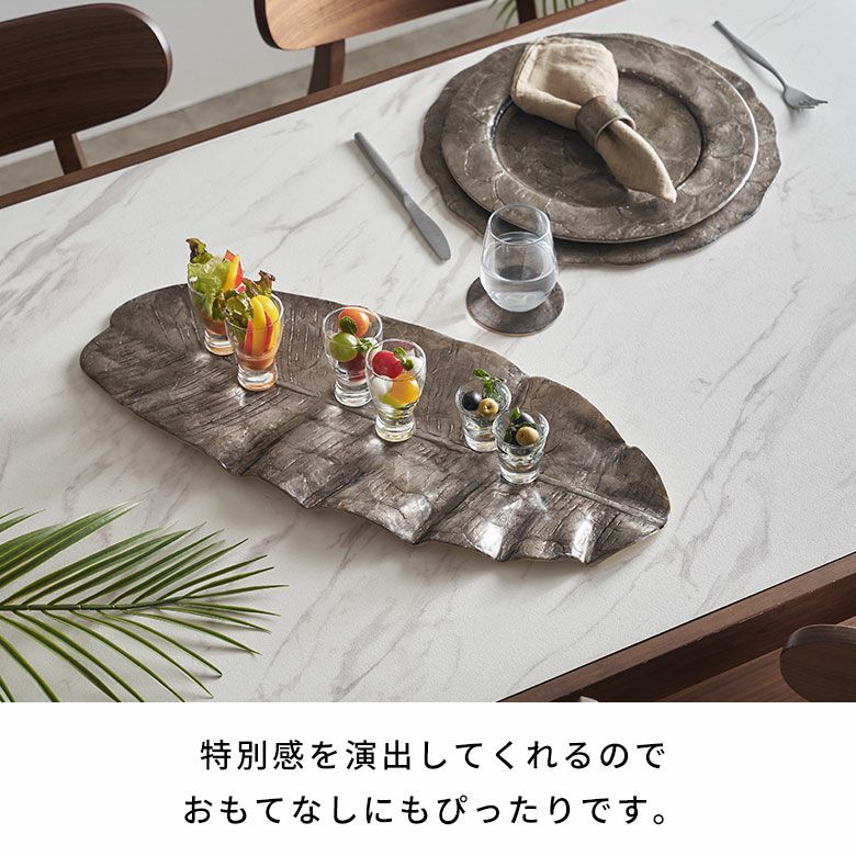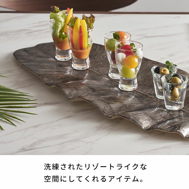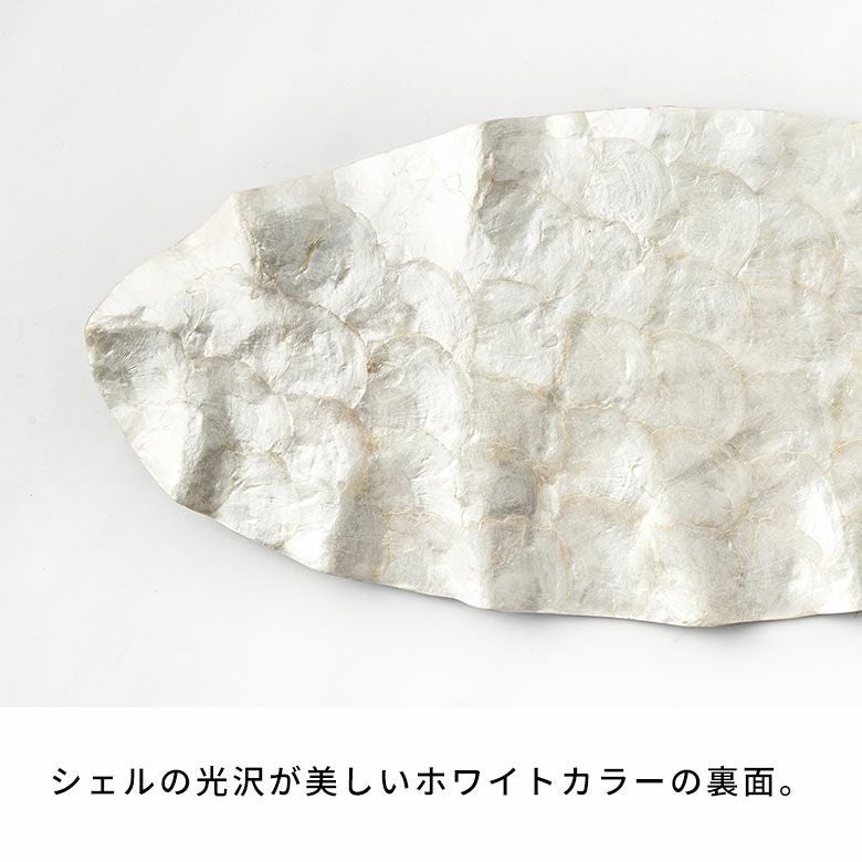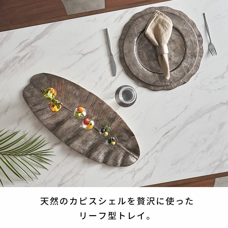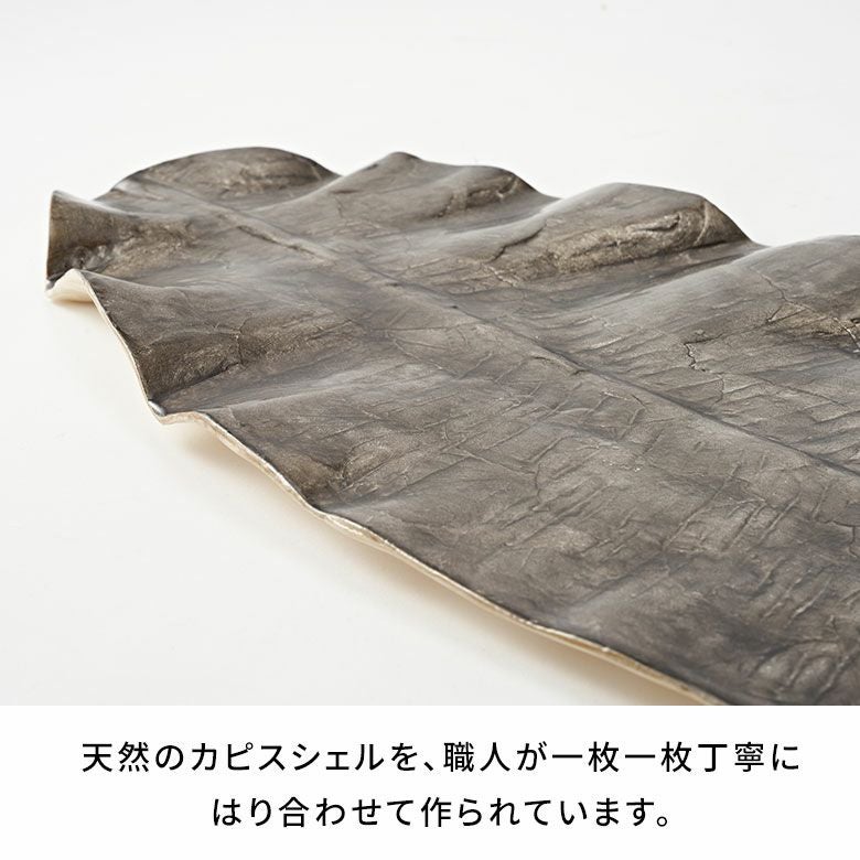 天然のカピスシェルを贅沢に使用したリーフ型トレイ。