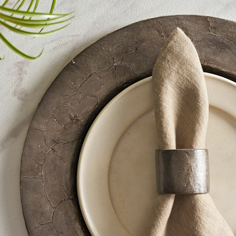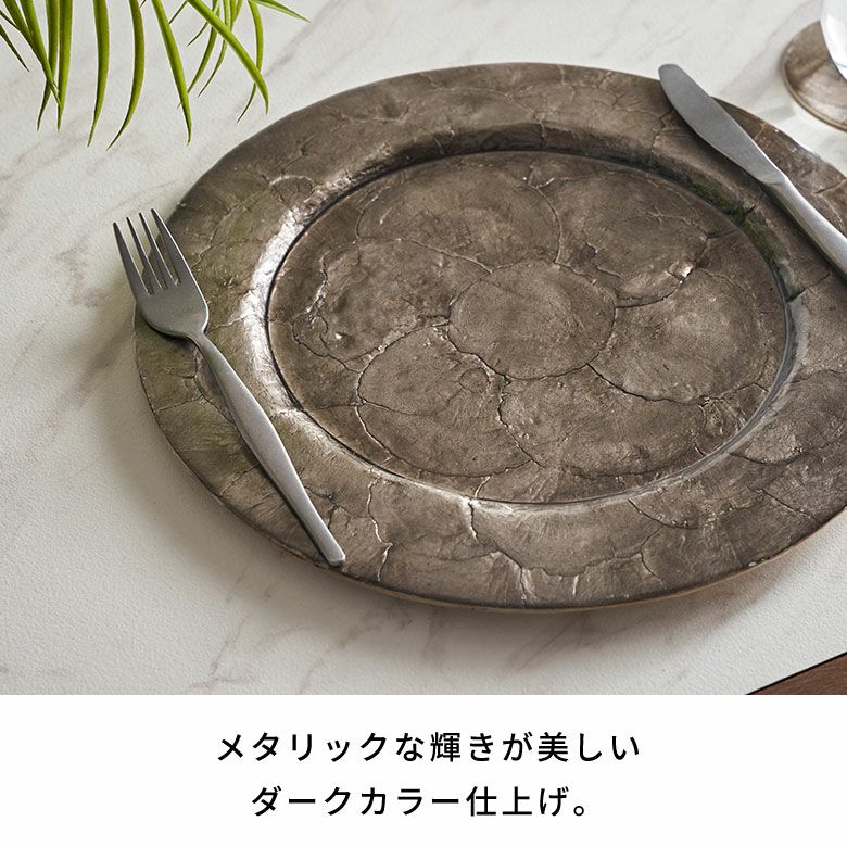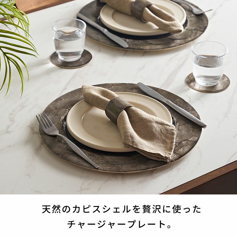 天然のカピスシェルを贅沢に使用したチャージャープレート。