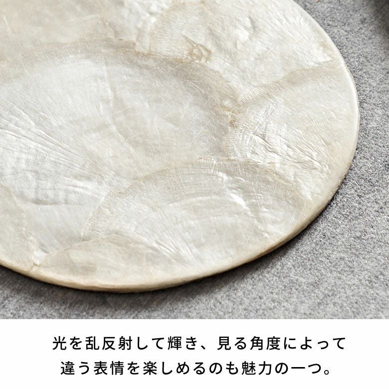 光を反射して見る角度によって異なる表情を楽しめるカピスシェル。