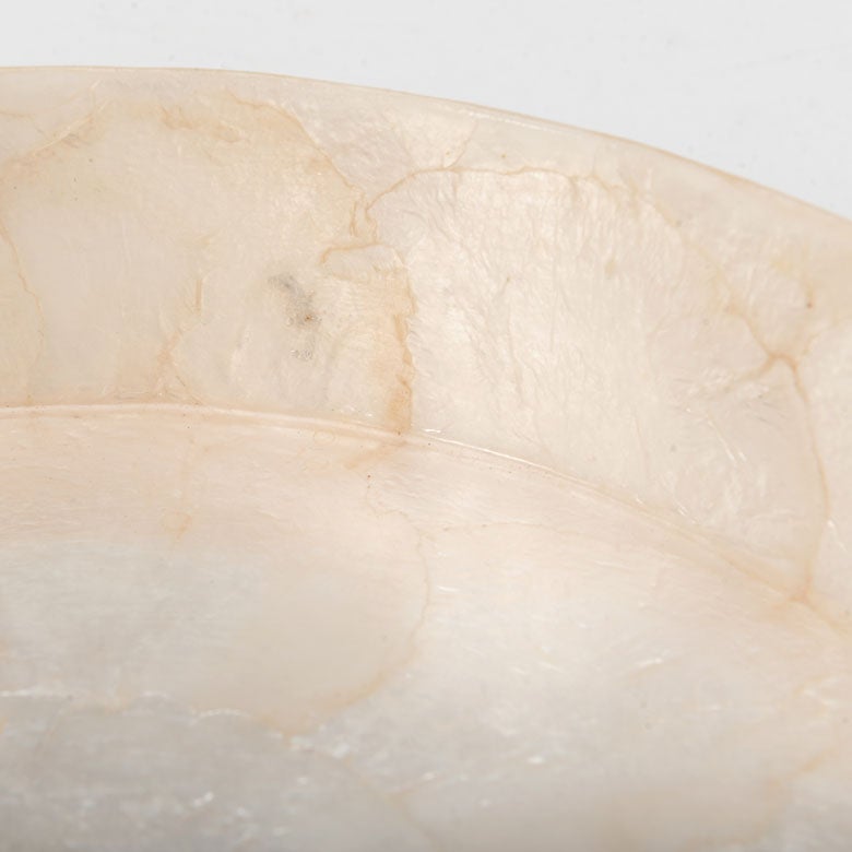 半透明のカピスシェルが光をやわらかく透かし、乳白色の艶とほのかな光沢が生まれます。
