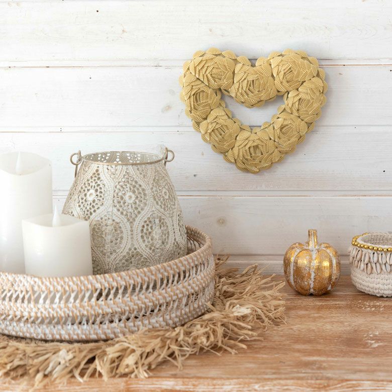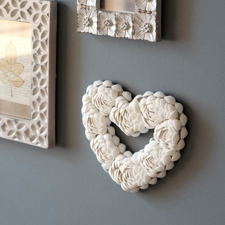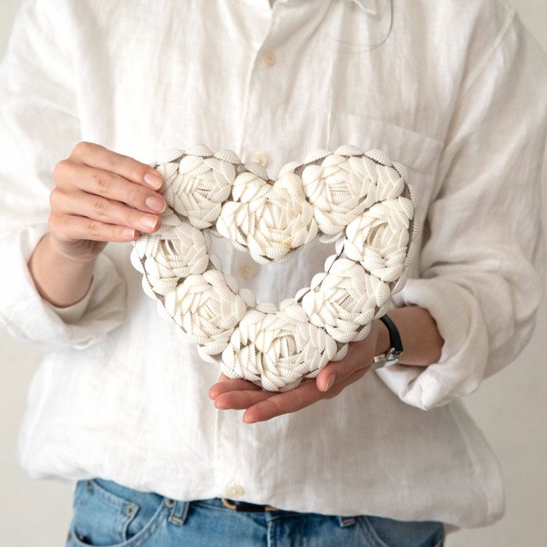 貝殻をバラの花のようにデコレーションした、ハート型オーナメント。