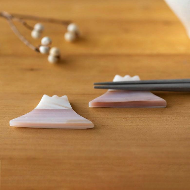 シェルでできた艶やかな質感が美しい、富士山を模ったお箸置き。
