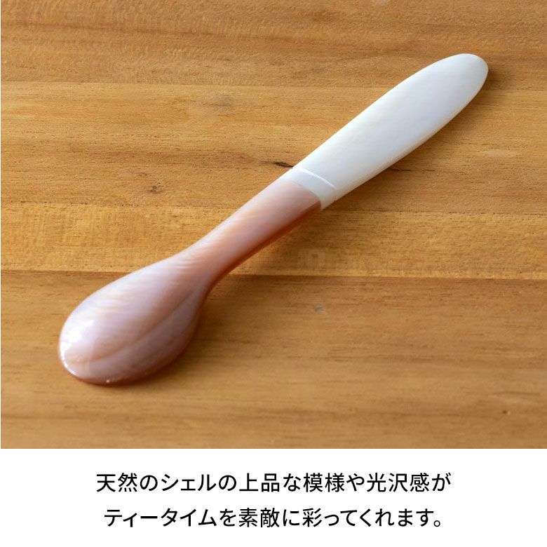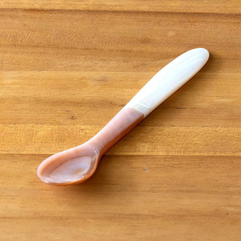 シェルでできた艶やかな質感が美しい、デザートスプーン。