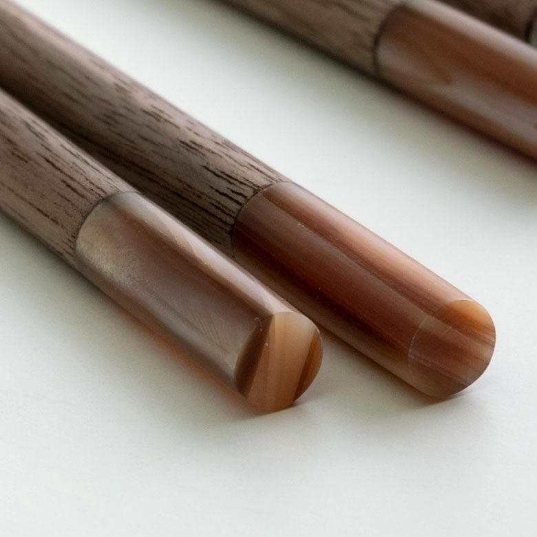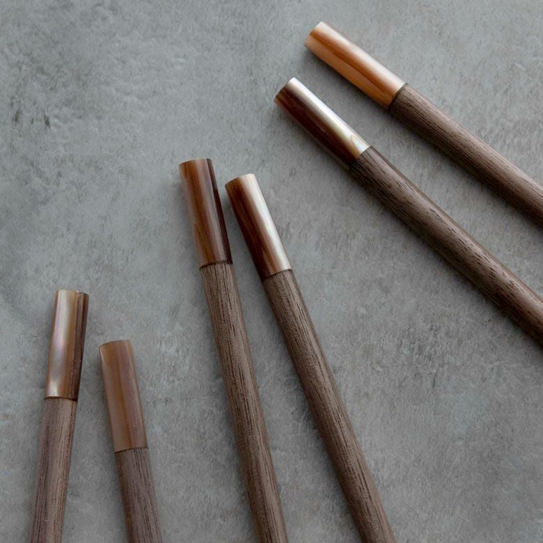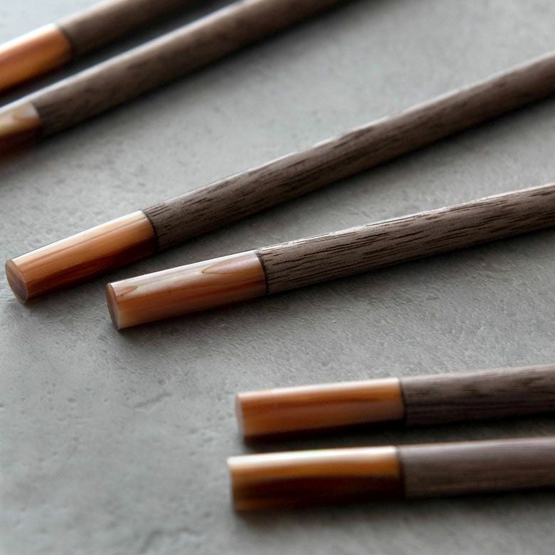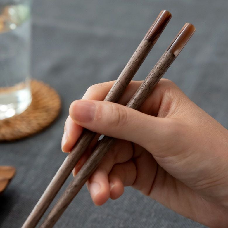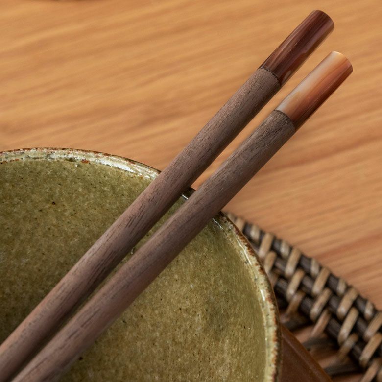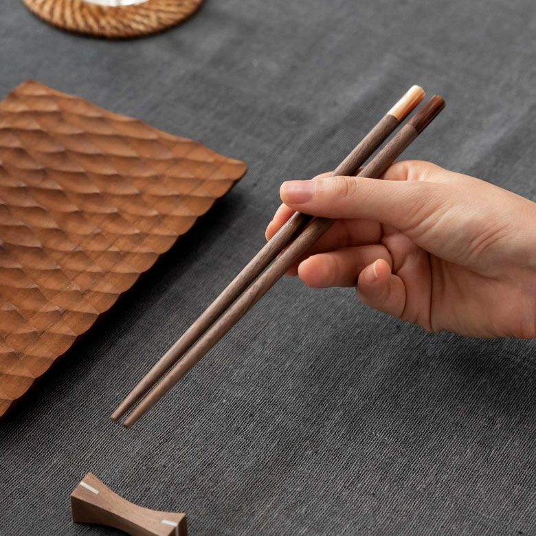 世界3大銘木のひとつでもあるウォルナットに、つやのあるシェルを合わせたお箸。
