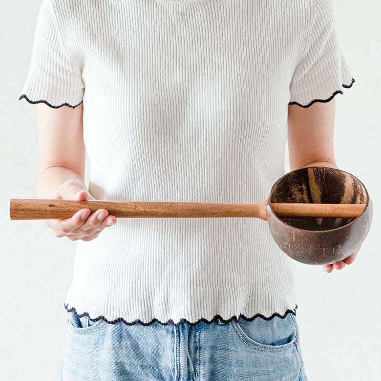 ココナッツの殻を生かした、コロンと可愛い形のアジアンひしゃく。