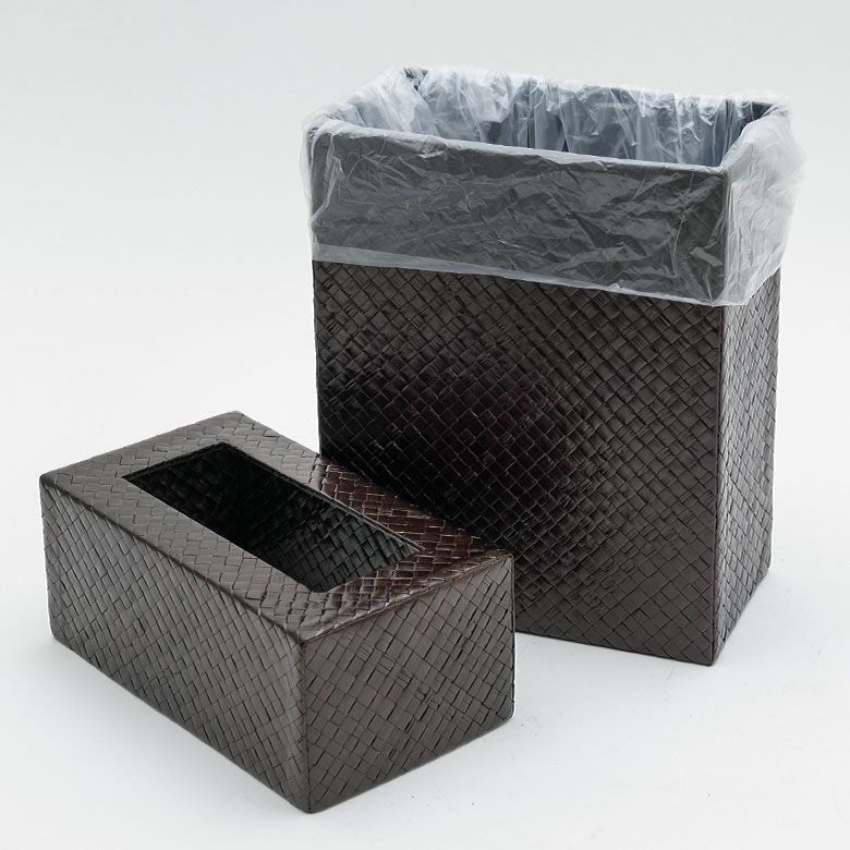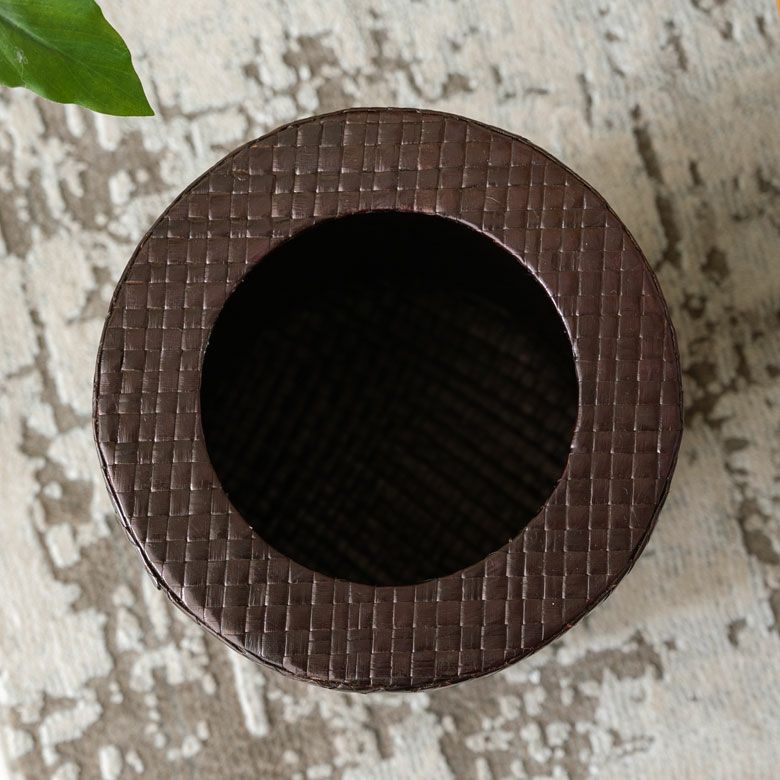 インドネシア・バリ島で作られたこちらのごみ箱は、アジアンリゾートホテルでも見かけることの多い、モダンなテイストの天然素材パンダン製。職人が丁寧に編み上げた佇まいは、プラスチック製にはない高級感を備えています。レザーのような艶とシックなブラウンカラーで、「ゴミ箱」でありながらインテリアのように空間に馴染みます。