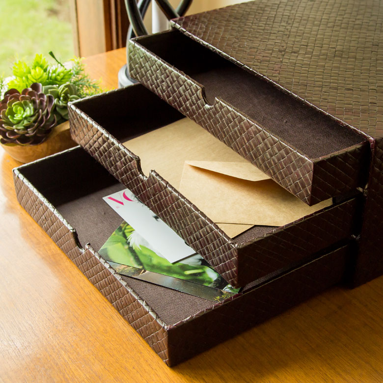 インナーにトレイなどを入れて、筆記用具やアクセサリー収納にも。