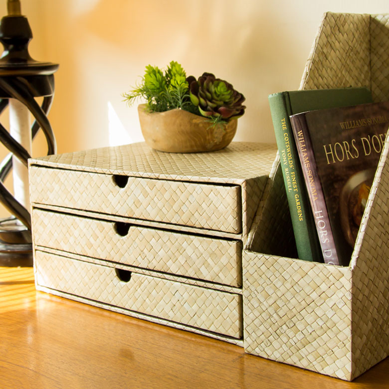 天然素材パンダンの卓上3段チェスト