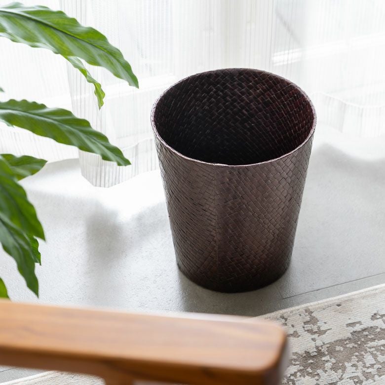 シンプルな円錐形のデザインと、美しい編み目が魅力的なラウンド型のごみ箱。