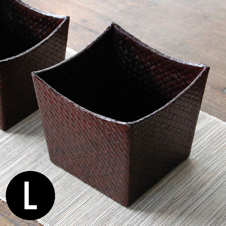 レザーのような編み目のアジアンバスケット。ゴミ箱はもちろんプランターカバーや収納バスケットにも使えるバリ島の人気アジアン雑貨 パンダンで編まれたアジアンバスケット[6239]Mサイズ【四角形 ごみ箱 ゴミ箱 ダストBOX くずかご ダストボックス ごみばこ プランターカバー 鉢カバー プランター入れ インテリア おしゃれ キッチン 縦型 便利 アジアン リビング バリ雑貨 アジアン雑貨】]【アジアン雑貨のアジア工房本店】