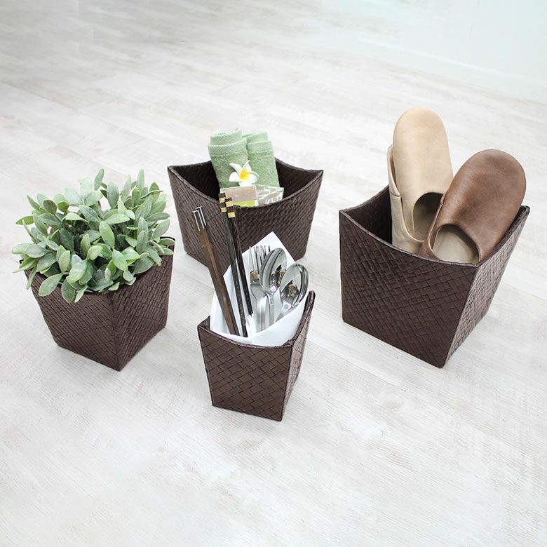 レザーのような編み目のアジアンバスケット。ゴミ箱はもちろんプランターカバーや収納バスケットにも使えるバリ島の人気アジアン雑貨 パンダンで編まれたアジアンバスケット[6238]Sサイズ 【四角形 ごみ箱 ゴミ箱 ダストBOX くずかご ダストボックス ごみばこ プランターカバー 鉢カバー プランター入れ インテリア おしゃれ キッチン 縦型 便利 アジアン リビング バリ雑貨 アジアン雑貨】]【アジアン雑貨のアジア工房本店】