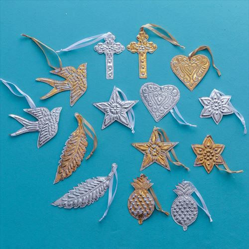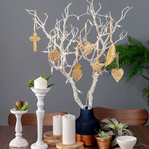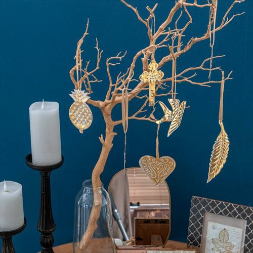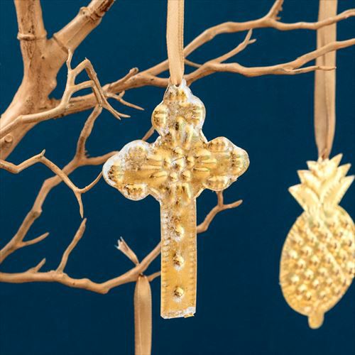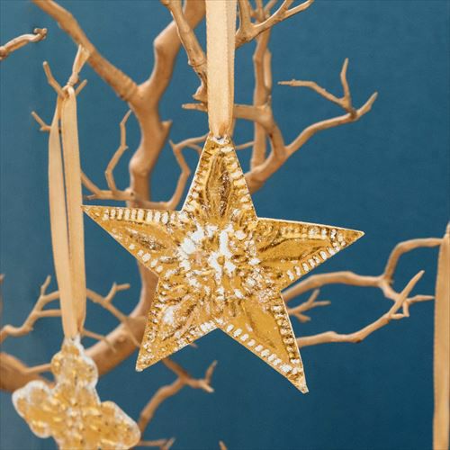 華やかなゴールドのアルミが、光を反射させて輝くオーナメント。