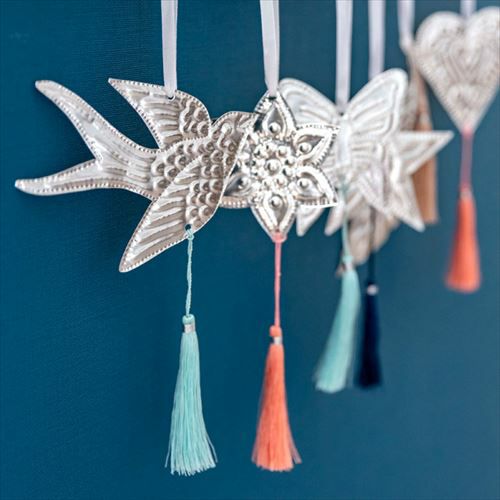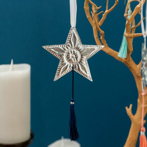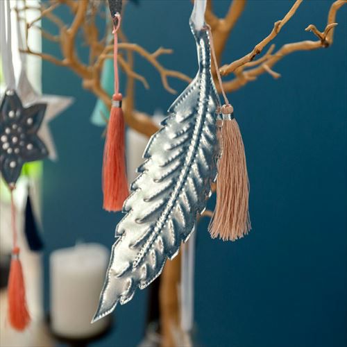 華やかなシルバーのアルミが、光を反射させて輝くオーナメント。
