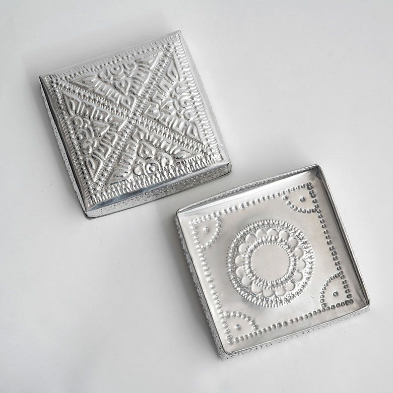 書類の整頓などにも使える♪可愛いデコレーションが人気のアジアン雑貨 アルミのデコレーション小物入れケース[L][10701]【収納ボックス 収納ケース フタ付き 整理箱小 収納箱 バリ 雑貨 アジア雑貨 アジアン雑貨 新生活入れ物 正方形 オブジェ デコレ アルミケース おしゃれ 蓋つき ふた付き】