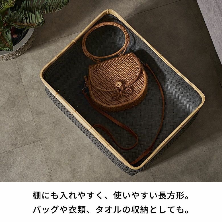 リビング キッチン 洗面所 衣類 洗濯物 おもちゃ バッグ 入れ 店舗 レストラン カフェ シンプルモダン モダン リゾートインテリア カゴ 籠 バス トイレ 異素材 バイカラー ハンドメイド バスケット Sサイズ かご 9.7L バンブー 竹 プラスチック 約 W 30cm D 20cm H 18cm ランドリーバスケット 耐水性 レクタングル かごバスケット 収納 収納バスケット 洗濯物入れ 荷物入れ かばん入れ 小物入れ おしゃれ 北欧 雑貨 インテリア リゾート アジアン [s-14065]