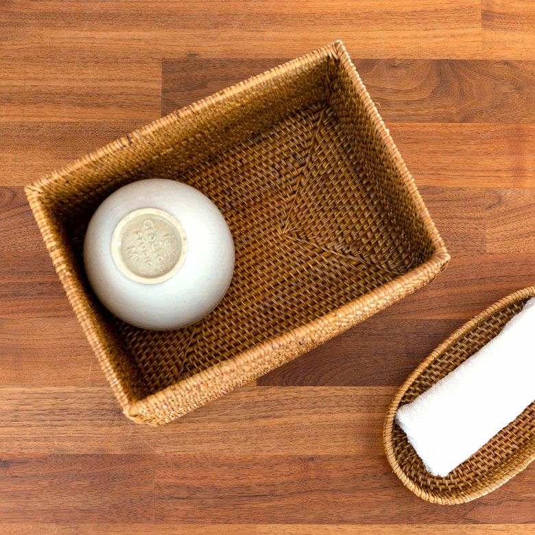 おしぼり置きトレイなど、同じラタン素材で揃えれば雰囲気アップ!