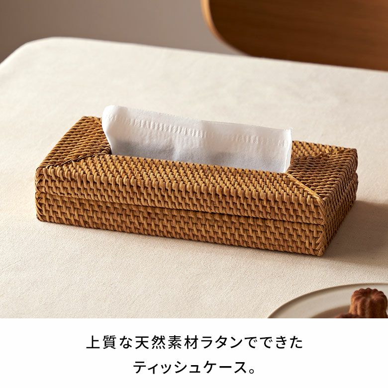 天然素材ならではの風合いを活かした、ラタンのティッシュケース。