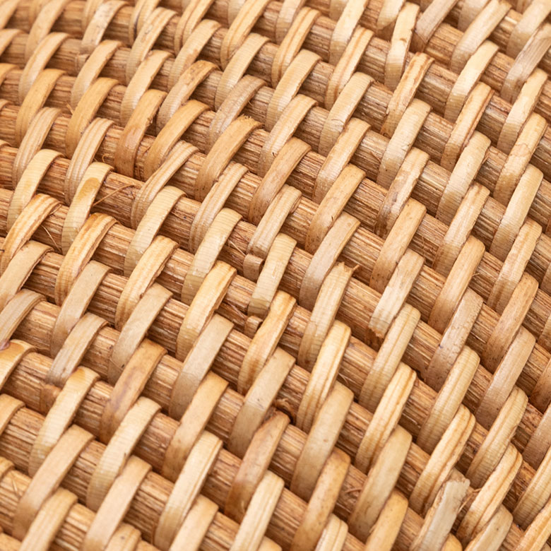 太いラタンと細いラタンの編み目が美しく、